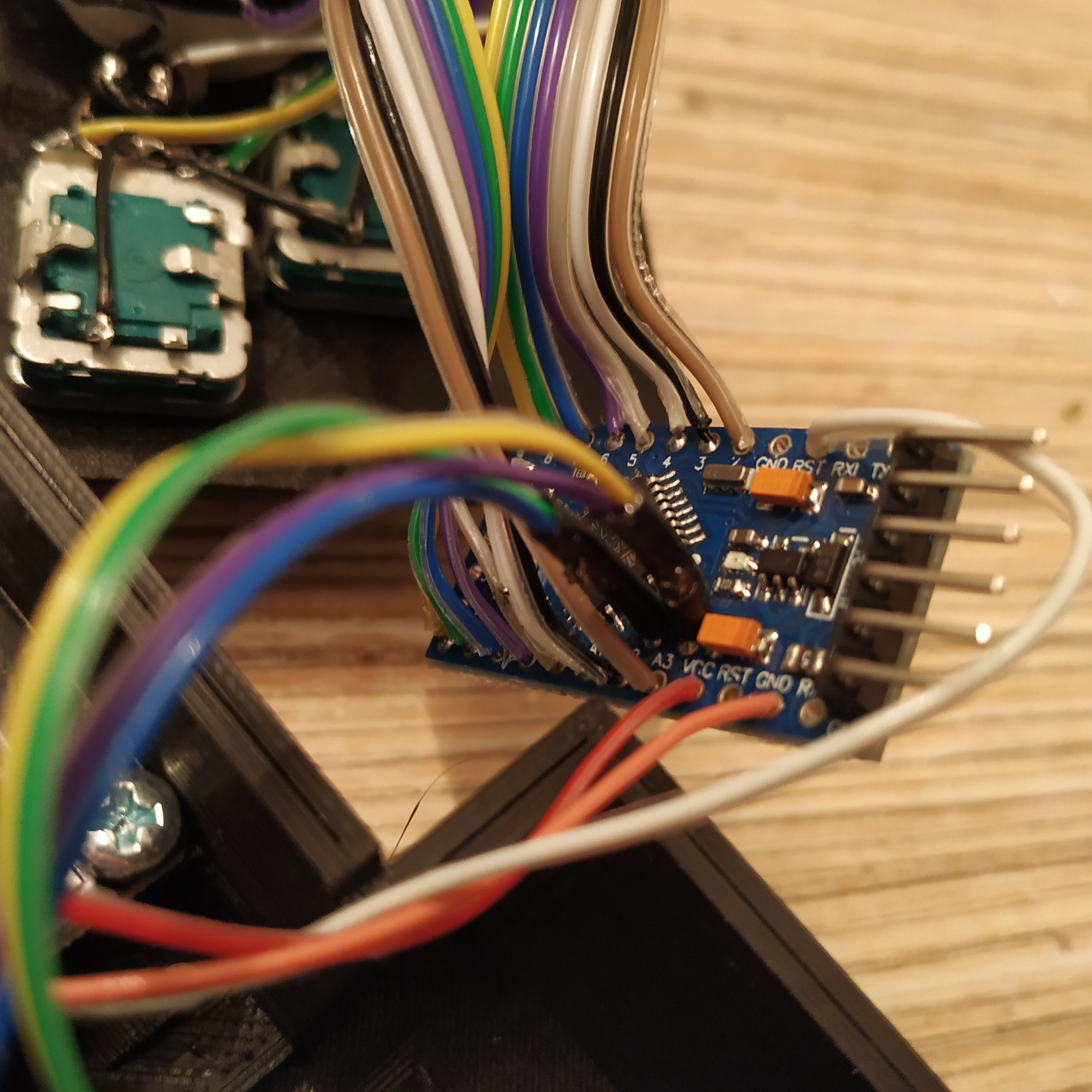 15. Do some cable management, close the lid and try if everything works! To do it, flash the simple pedestal part of the device (LEFT SOCKET) with vrmaxII_pedestal_a.ino and the radio panel part (RIGHT SOCKET) with vrmaxII_pedestal_b.ino firmware.