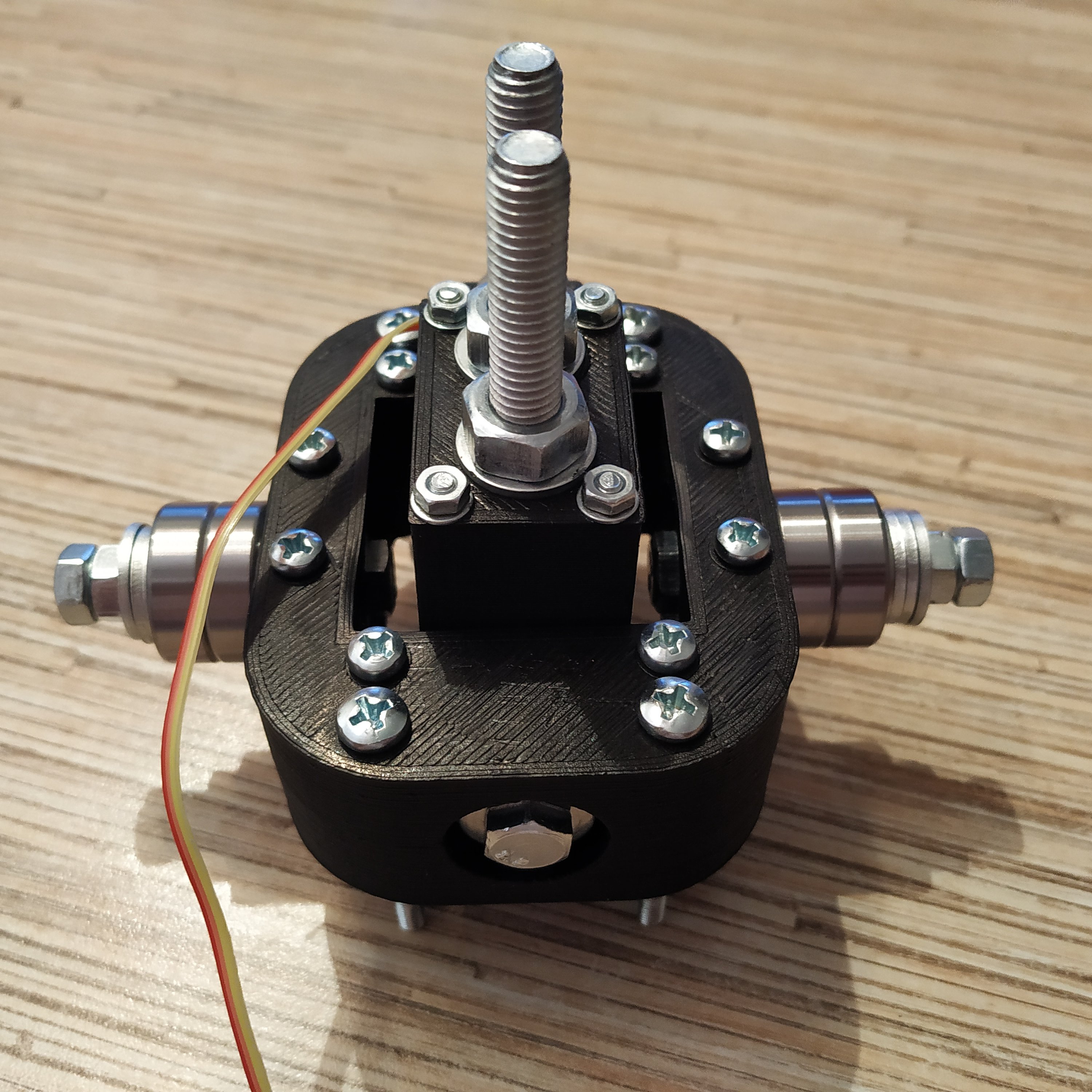 The way that centering is implemented in most joysticks causes movements around the center to be less precise due to noticeable “bump” when going through the center. In a helicopter, this is unacceptable as you will be mostly moving the stick around the center. In this gimbal, centering is made in a different way to avoid this “bump” entirely.