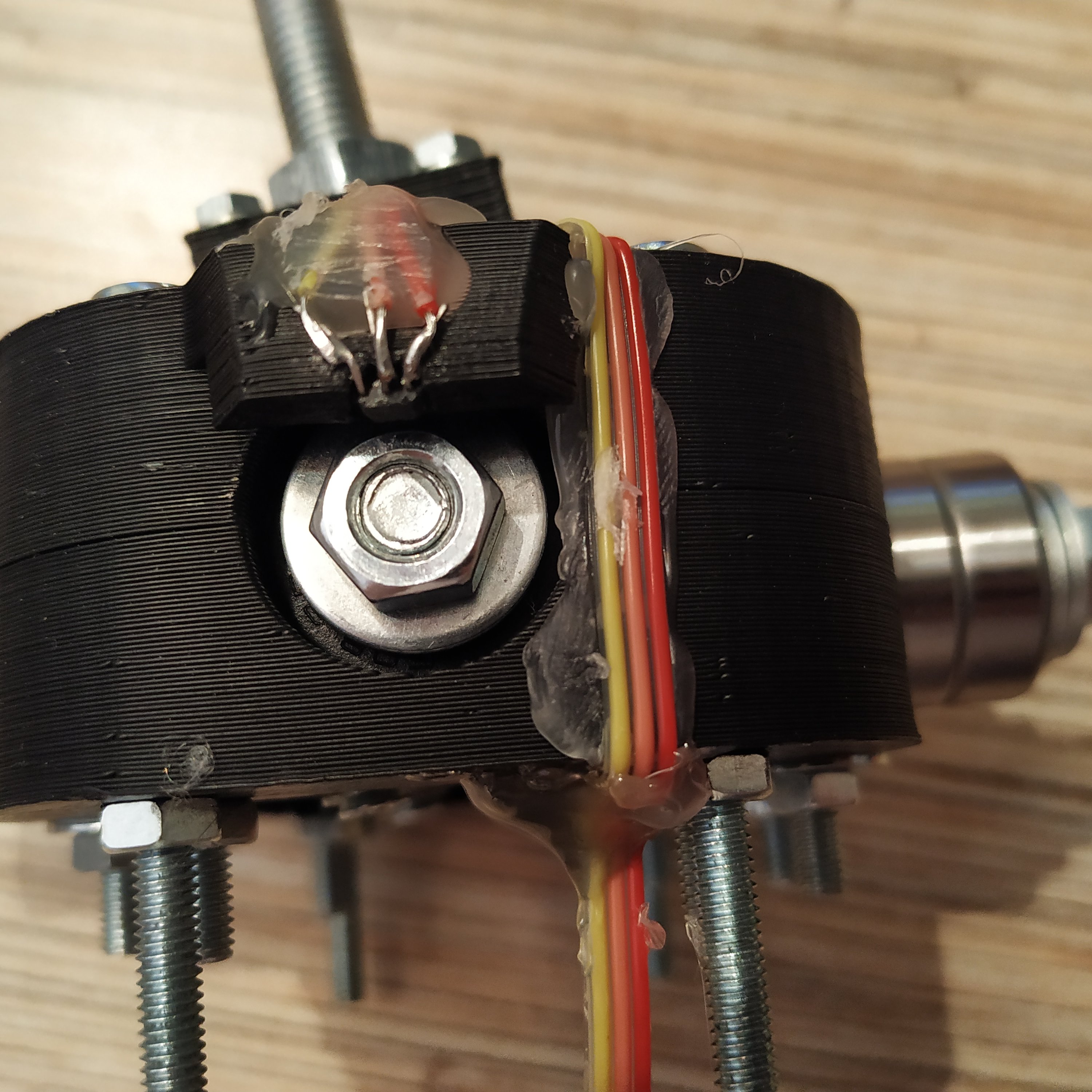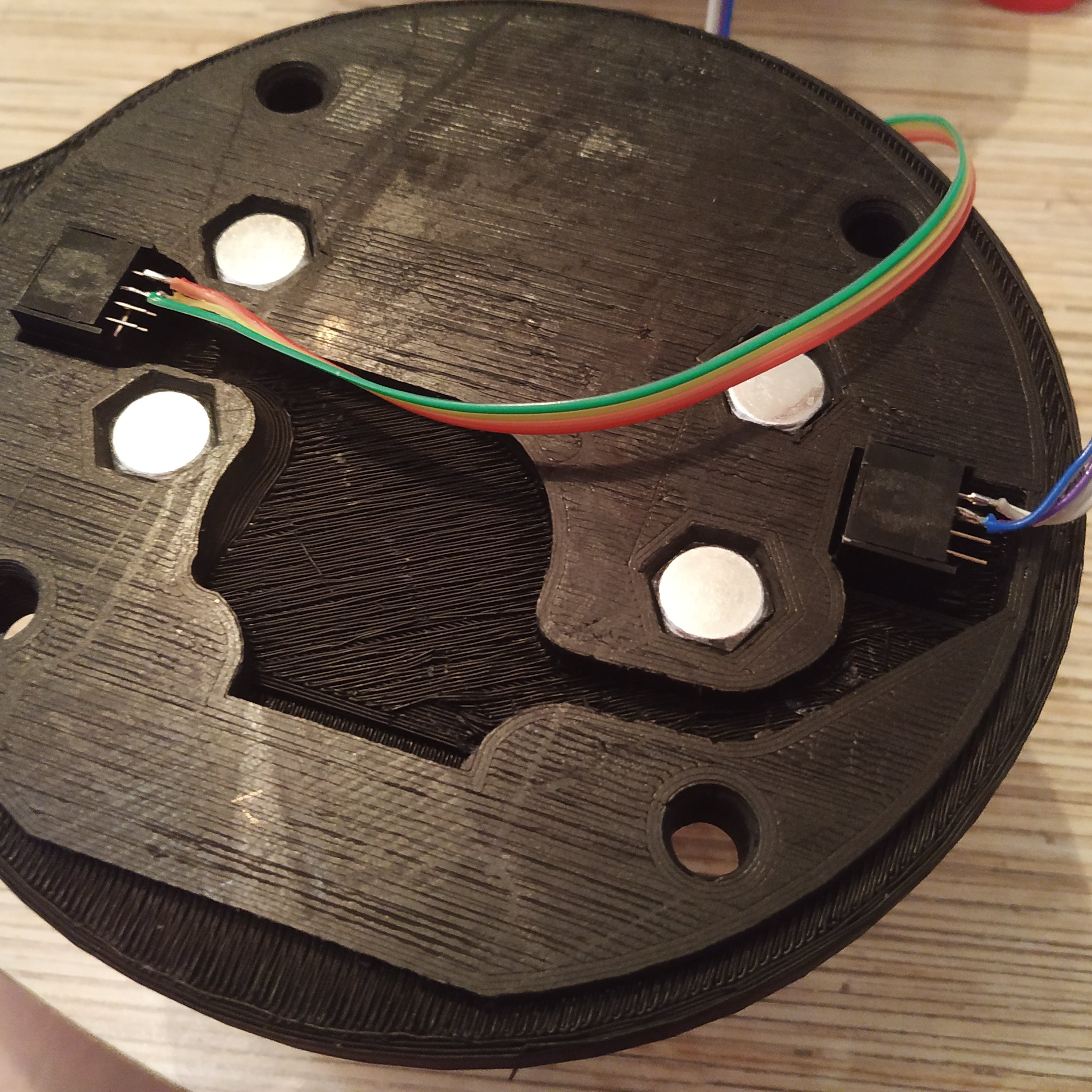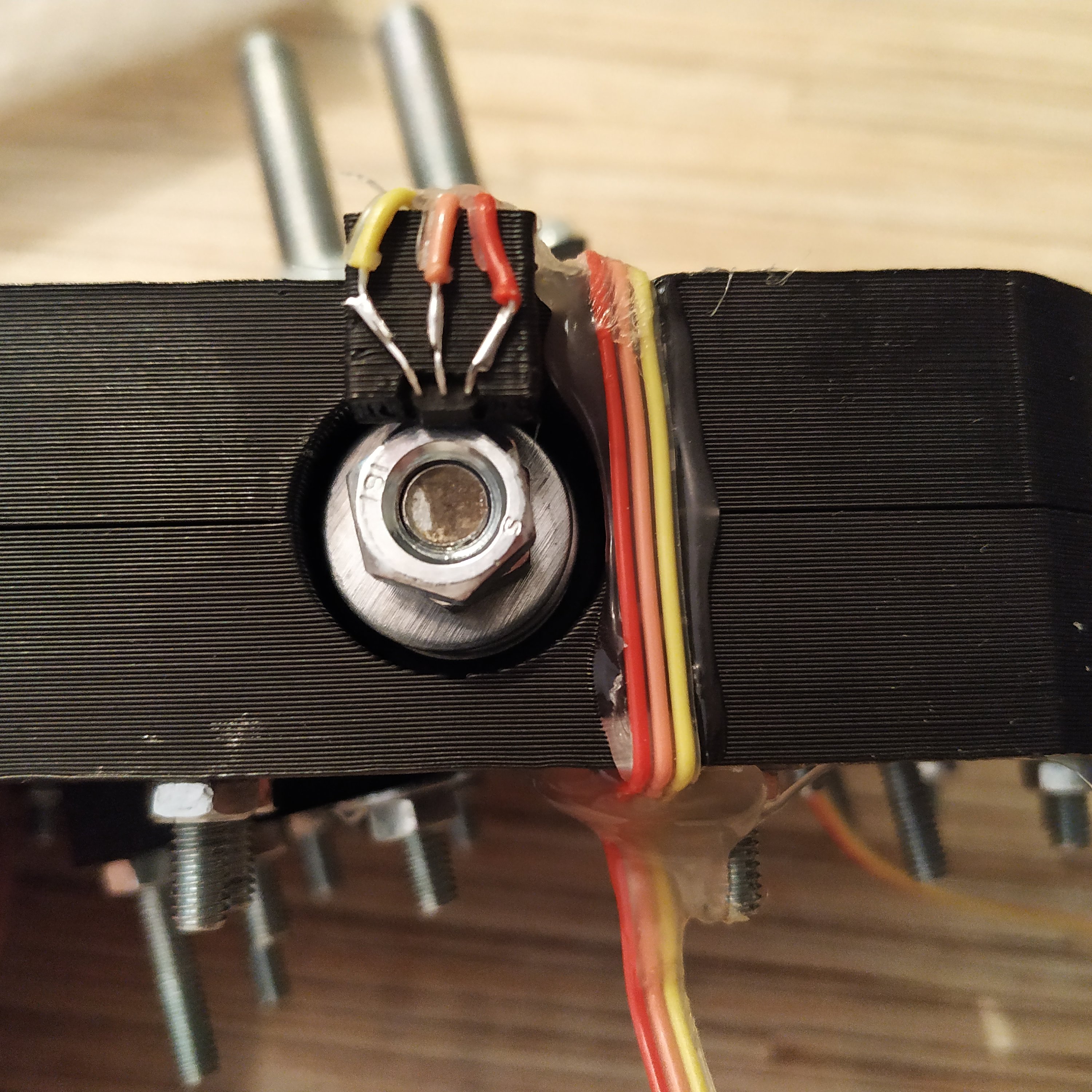 12. Put axis magnets onto nuts, make sure they are centered, use hot glue to fix them in place. Don't worry about centering axes too much, we'll do it later during the calibration process.