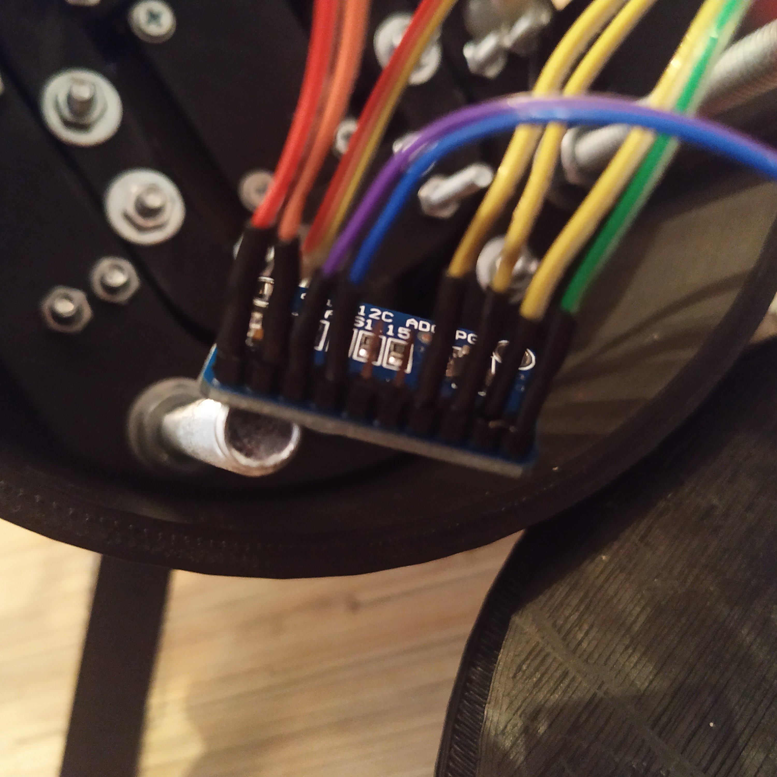 23. Assemble all VCC wires to a cable tie. Repeat with SCL and SDA wires. Route a 4-wire cable from the tie to ADS1115 board and solder all wires as follows: