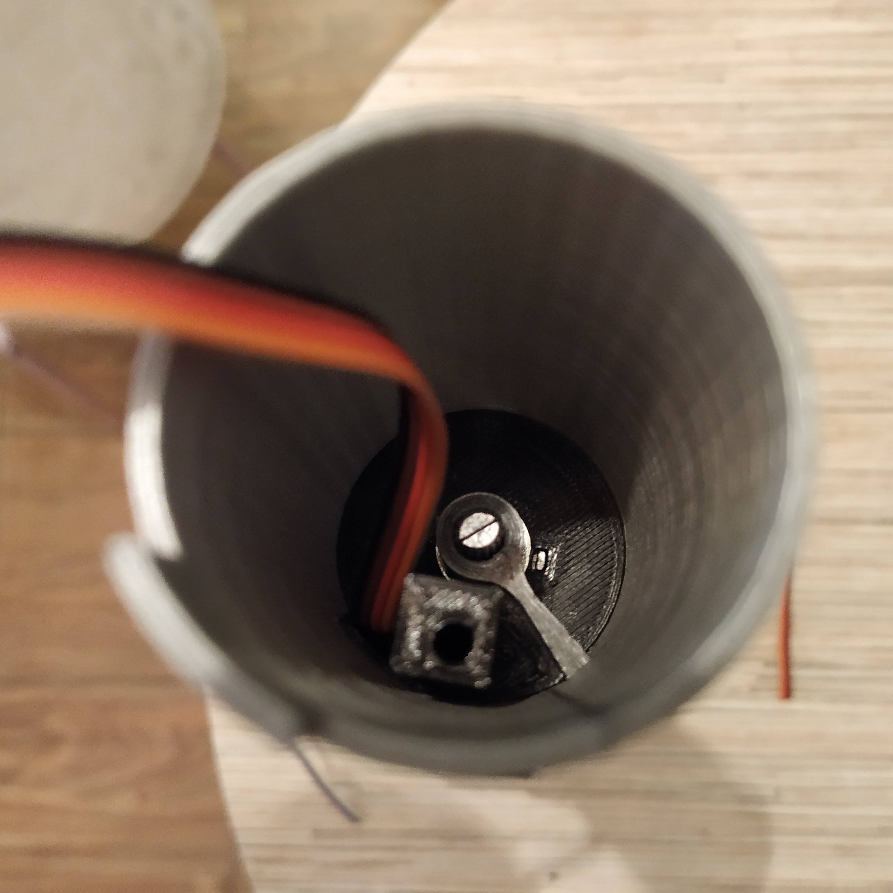 7. Route 4-wire I2C cable and a 3-wire pot cable through the lever. This step may require some patience depending on the wires being used.