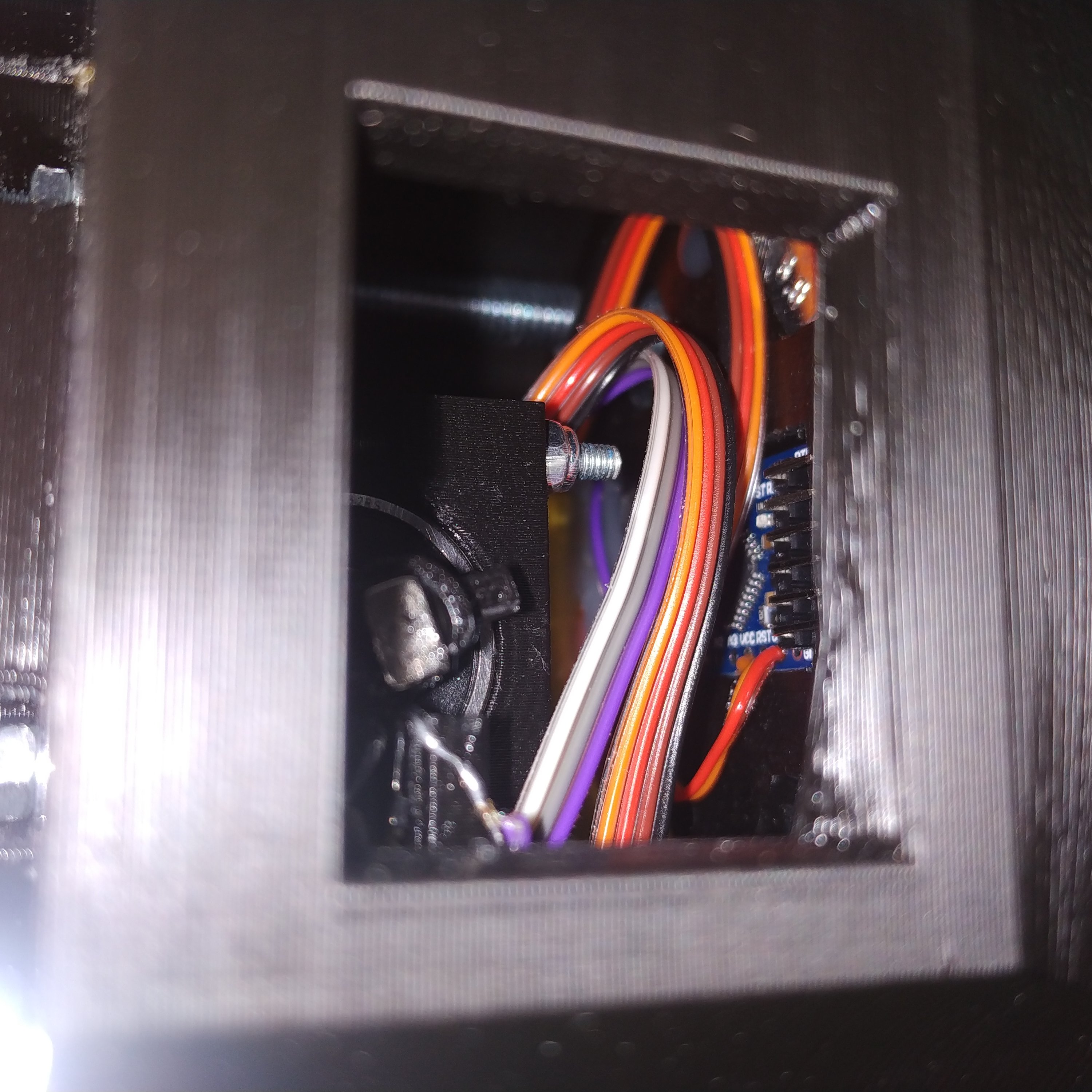 23. Make sure all the cables fit snugly inside the enclosure, and nothing touches the magnet: Then you can close the hatch.