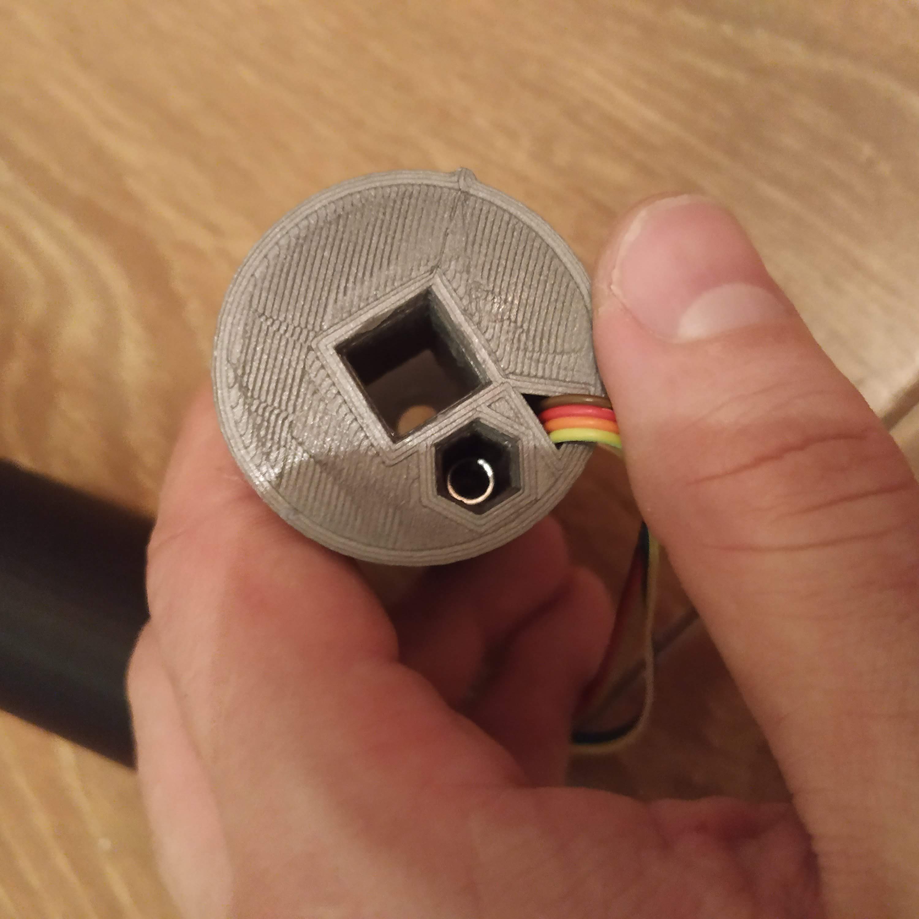 7. Route 4-wire I2C cable and a 3-wire pot cable through the lever. This step may require some patience depending on the wires being used.