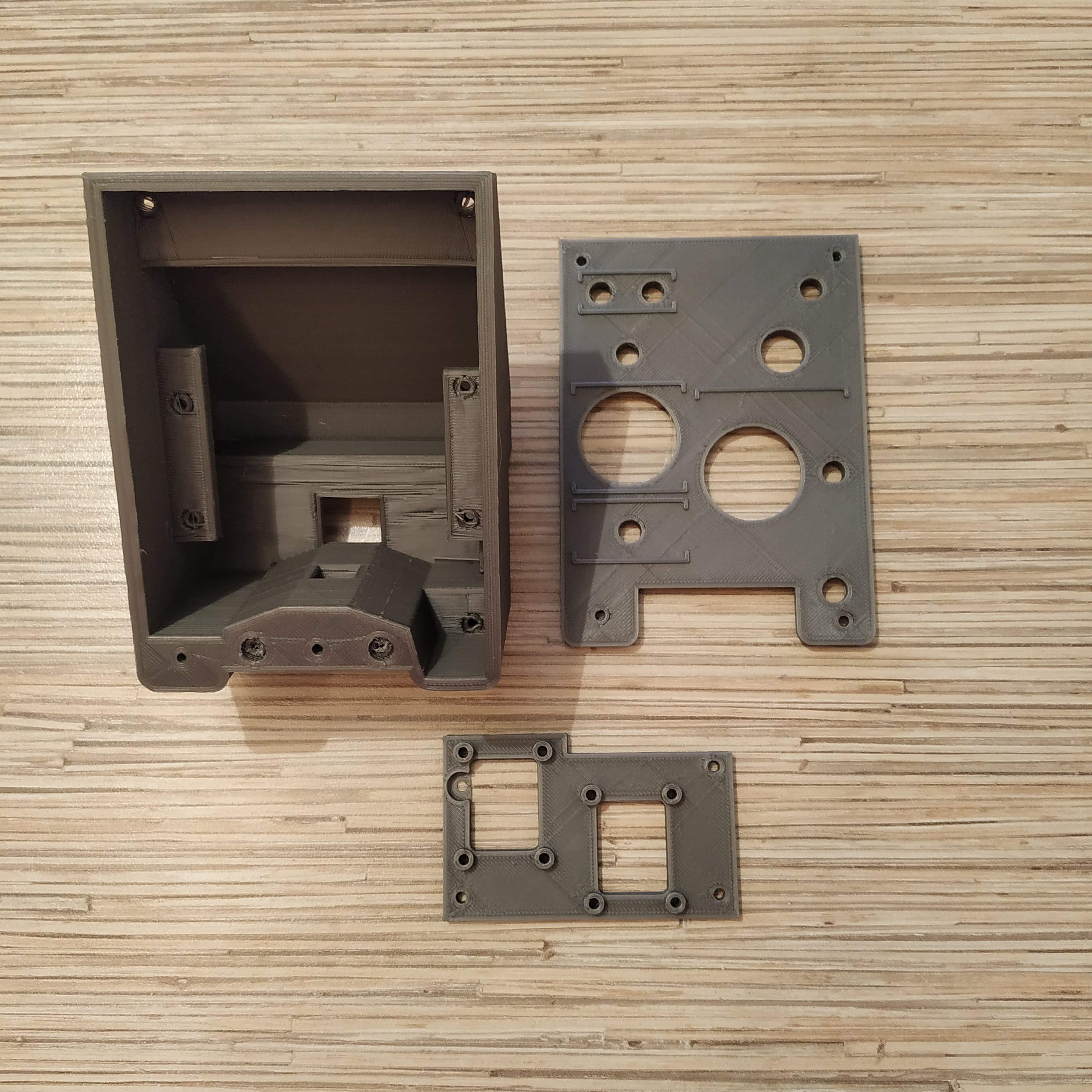 1. Remove supports from all printed parts. Take a spare piece of square alu pipe and put the head housing onto it several times to ensure a tight, but not overly tight, fit. Press-fit nuts into their sockets.