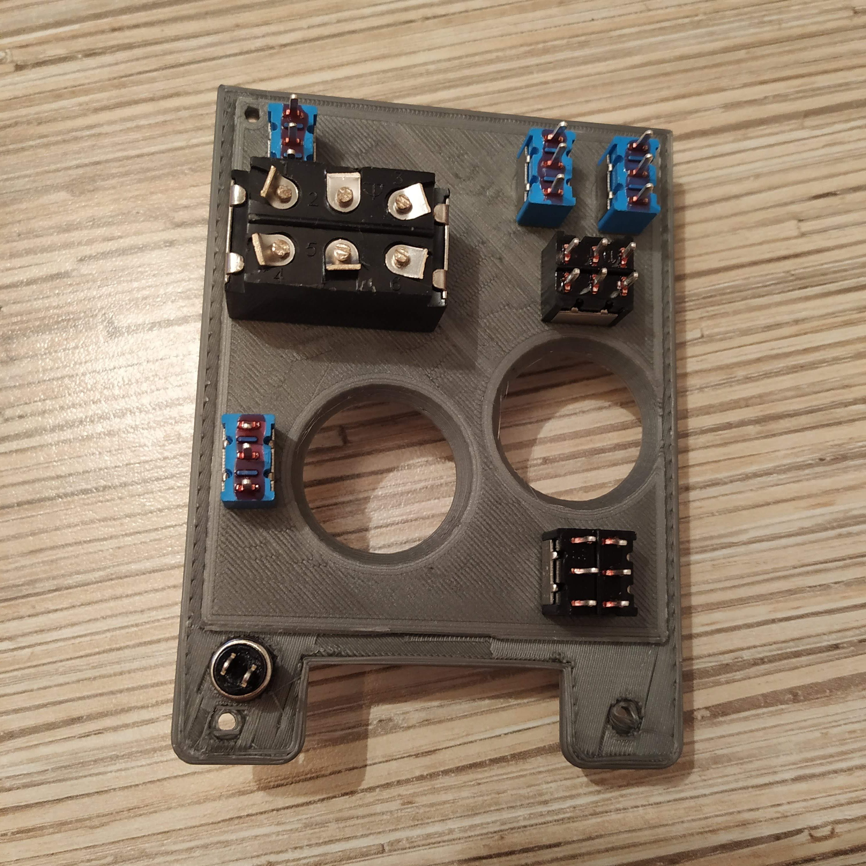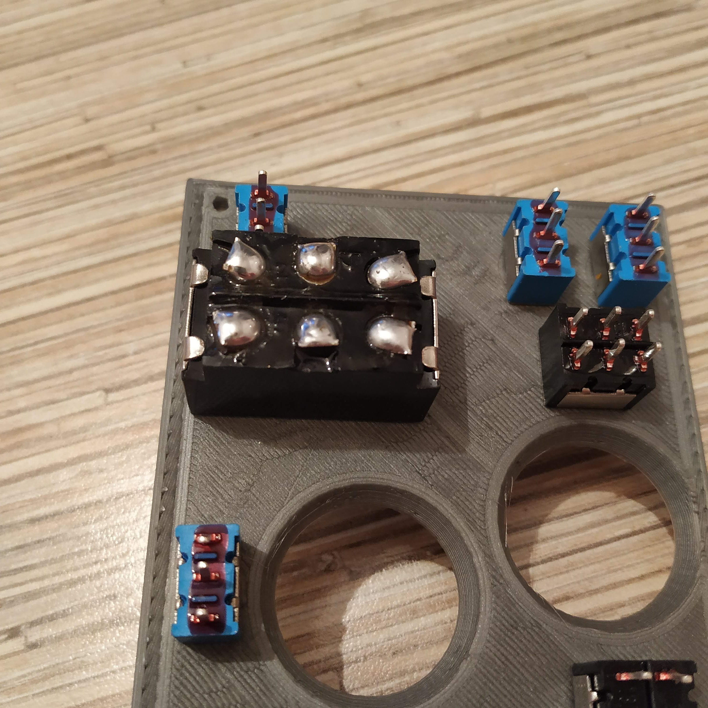 3. IMPORTANT FIX: cut legs of the bottom left switch (when viewed from the top (previous picture), face side, the spring-loaded governor switch) short! Otherwise, it will be shorting pins of the KY-083 board under it!
