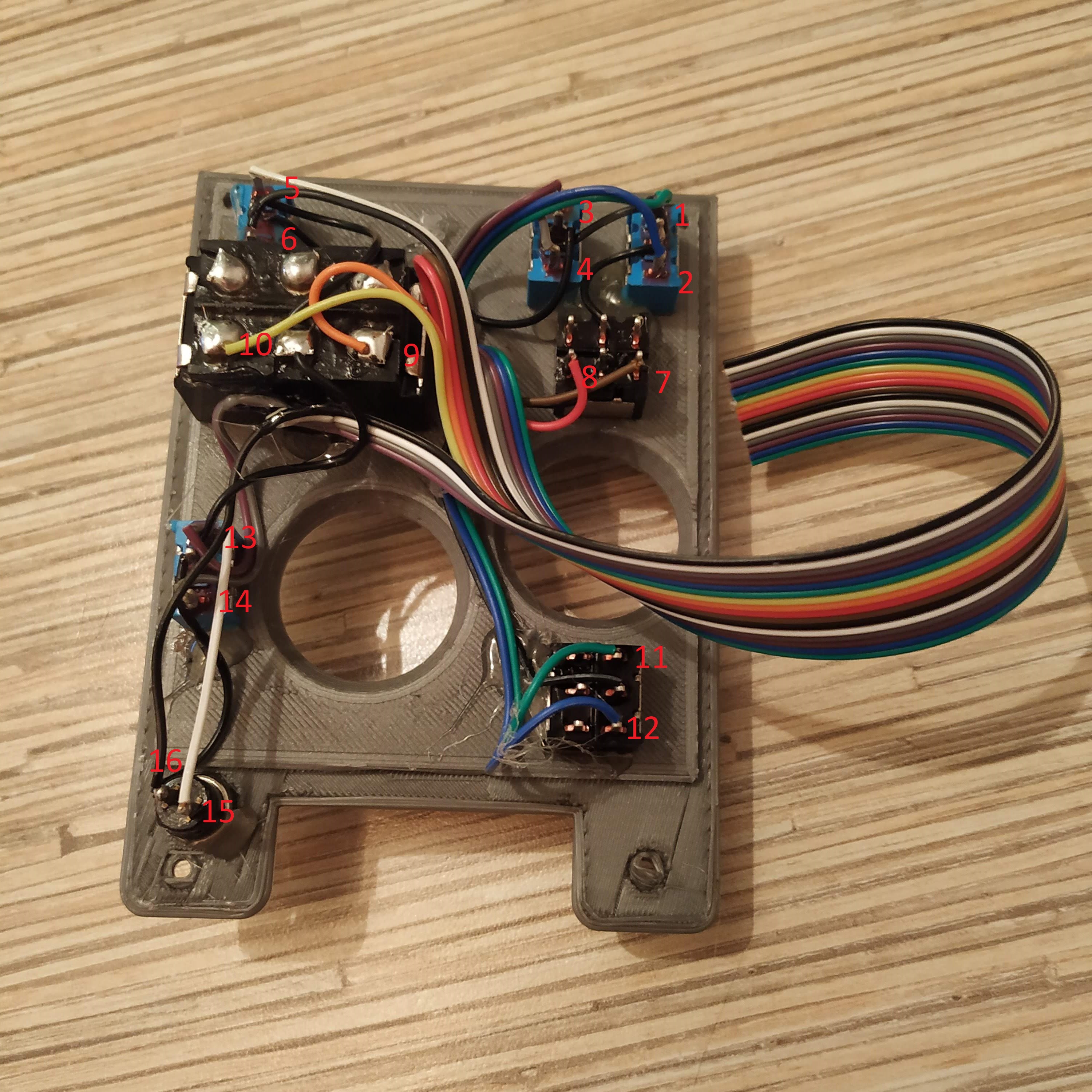 9. Let’s move on to the pot controller. Attach pot boards to their frame, pins facing backward, with 8 M3x6mm screws. (or you can use 2 M3x6mm screws on the left side and 10mm screws elsewhere) .