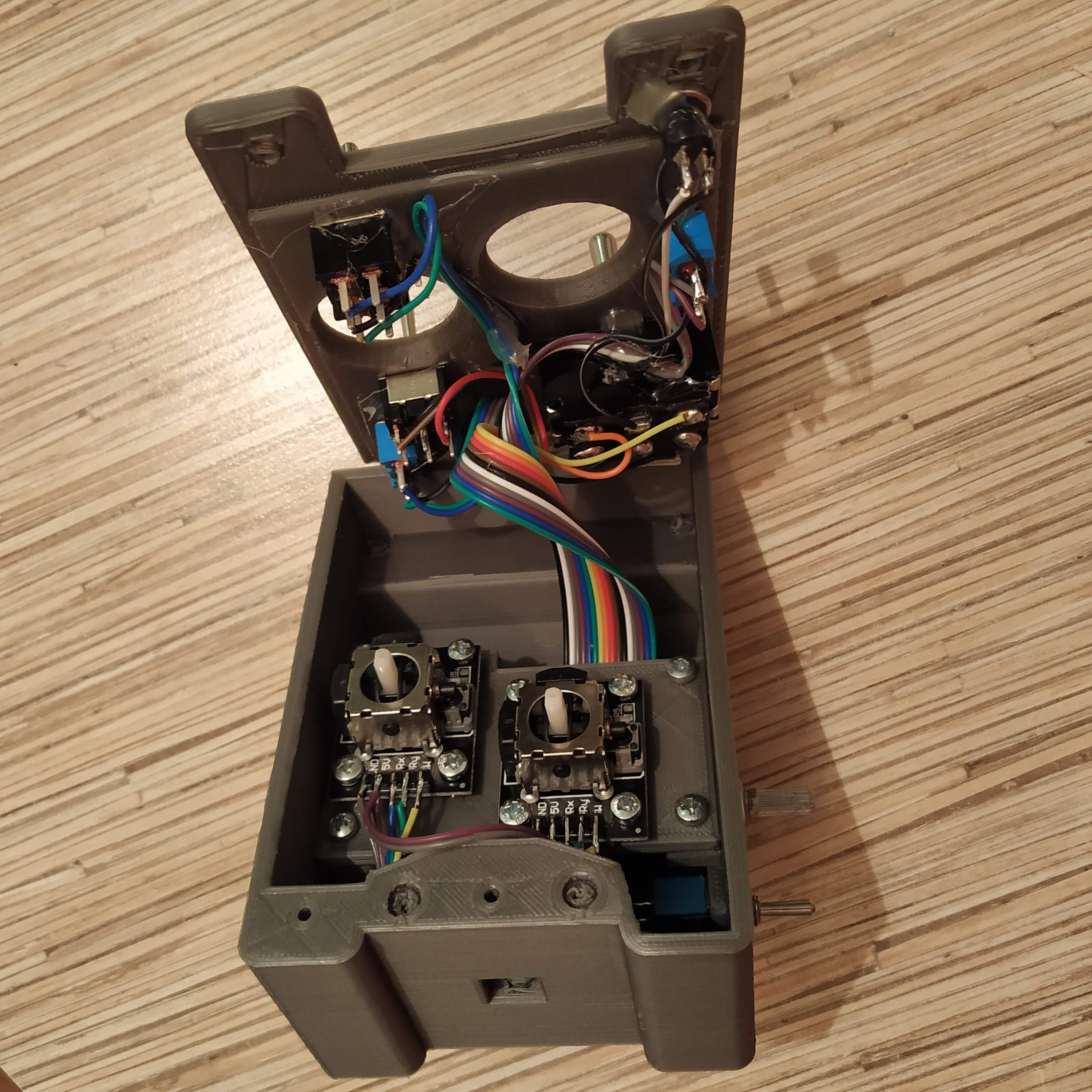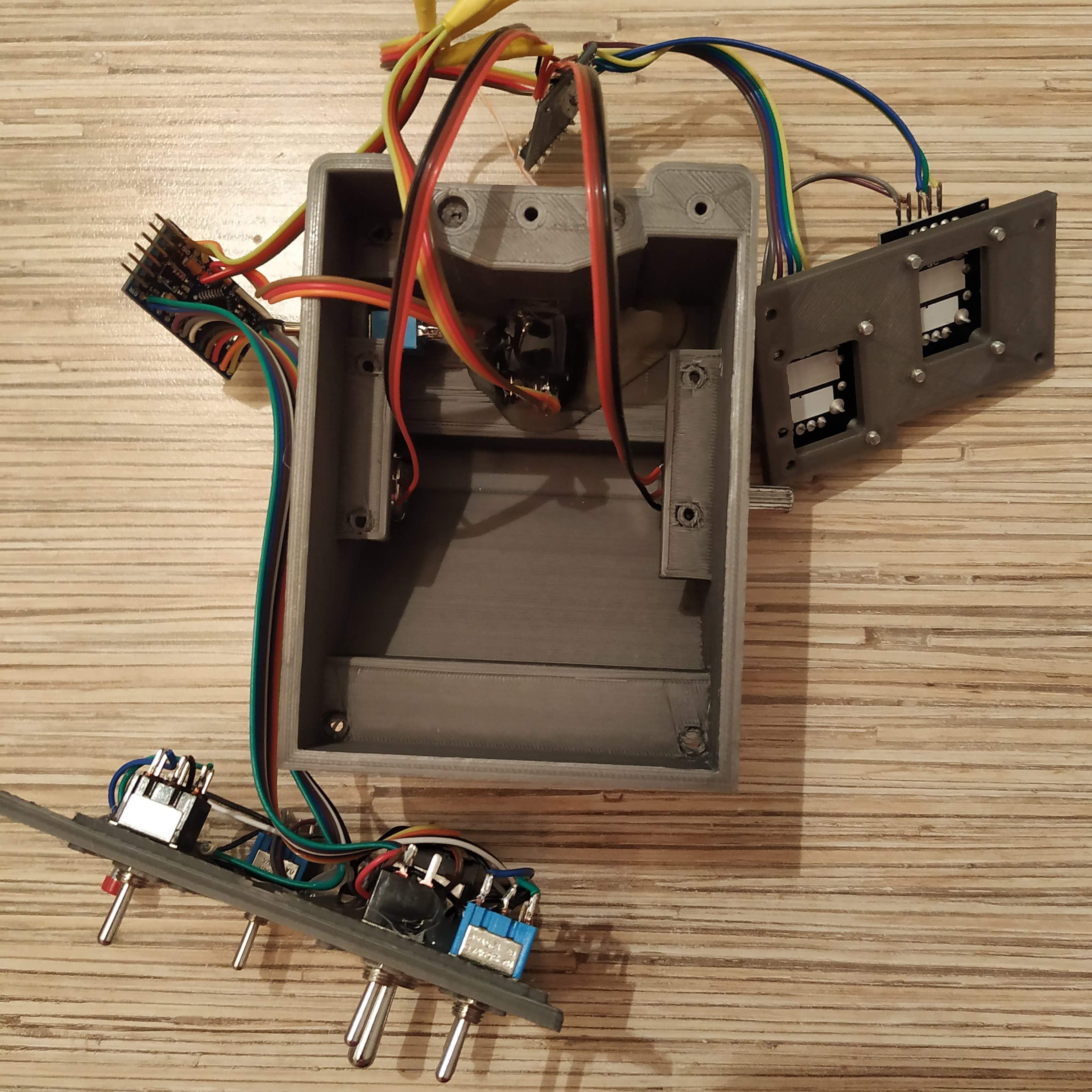 12. Electronics is finally assembled! Now, we need to flash Arduino boards and test everything. At first, connect a USB-UART adapter to boards and flash them with their corresponding firmware. You can uncomment Serial.prints to test switches (NOTE THAT ALL SWITCHES SHOULD BE CENTERED, YOU MAY NEED TO PRESS RESET MANUALLY DURING FLASHING PROCESS). When you press something, a “1” should turn on somewhere. After all, switches are tested, comment out “Serial.prints”, reflash the board, connect the ethernet socket to Simchair MKIII I2C controller and check that the collective head is recognized. Collective heads register as the 3rd “Arduino Leonardo” in the list.