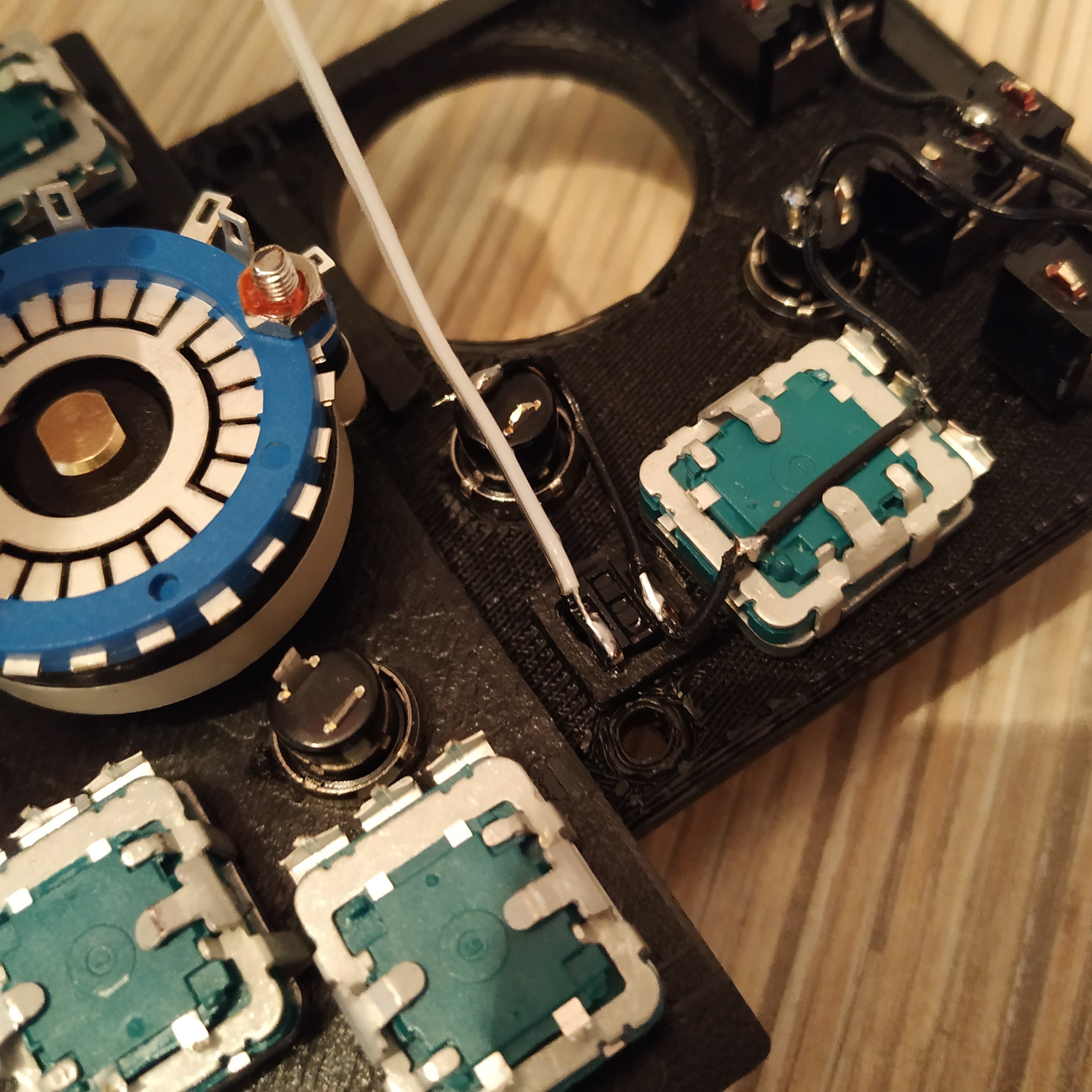 4. Solder the ground wite to the radio panel part. The lid of the rotary switch is removed so you can see GND pins (4 pins connected to the central ring).