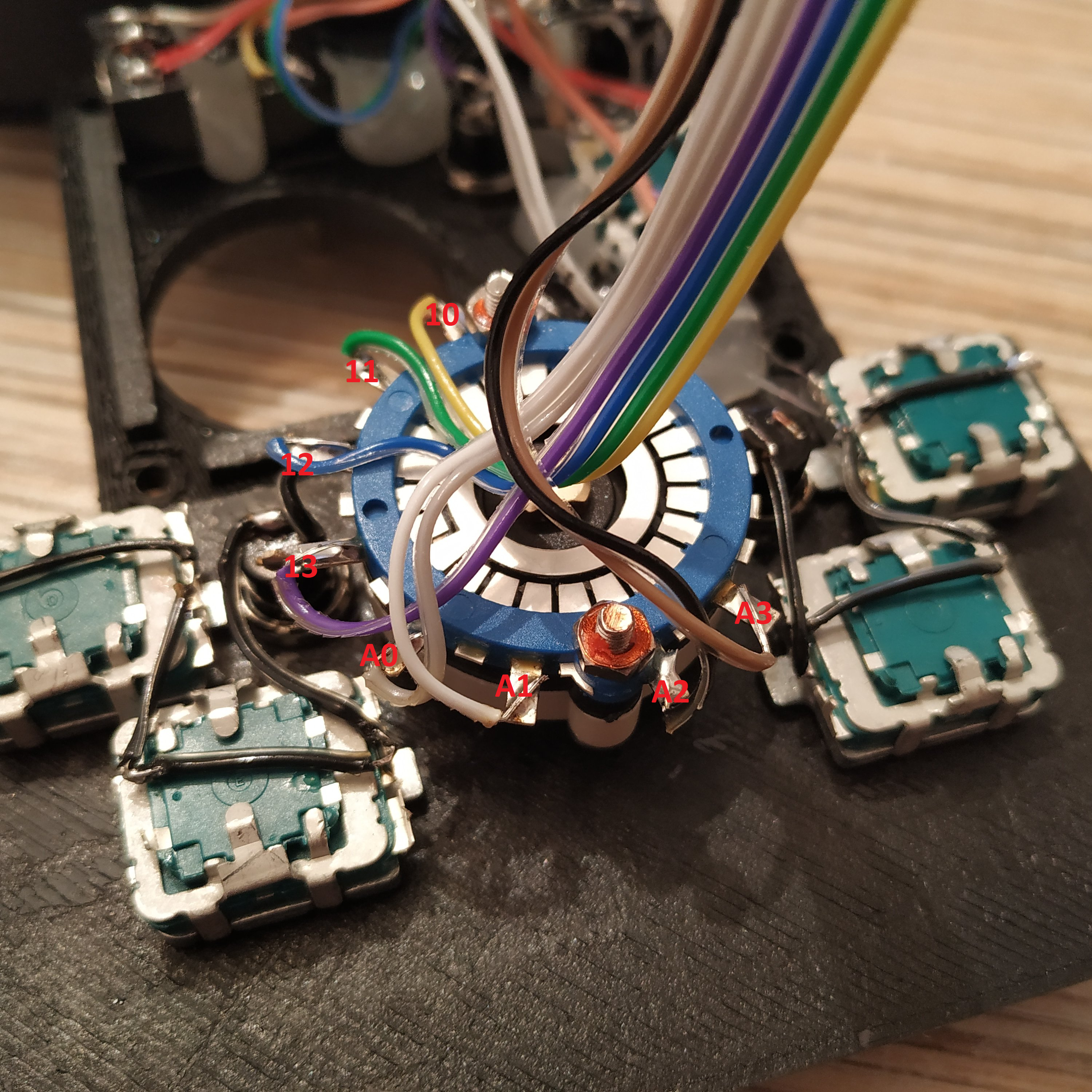 8. Solder encoders and rotary switch cable according to red pin numbers show in their corresponding pictures.