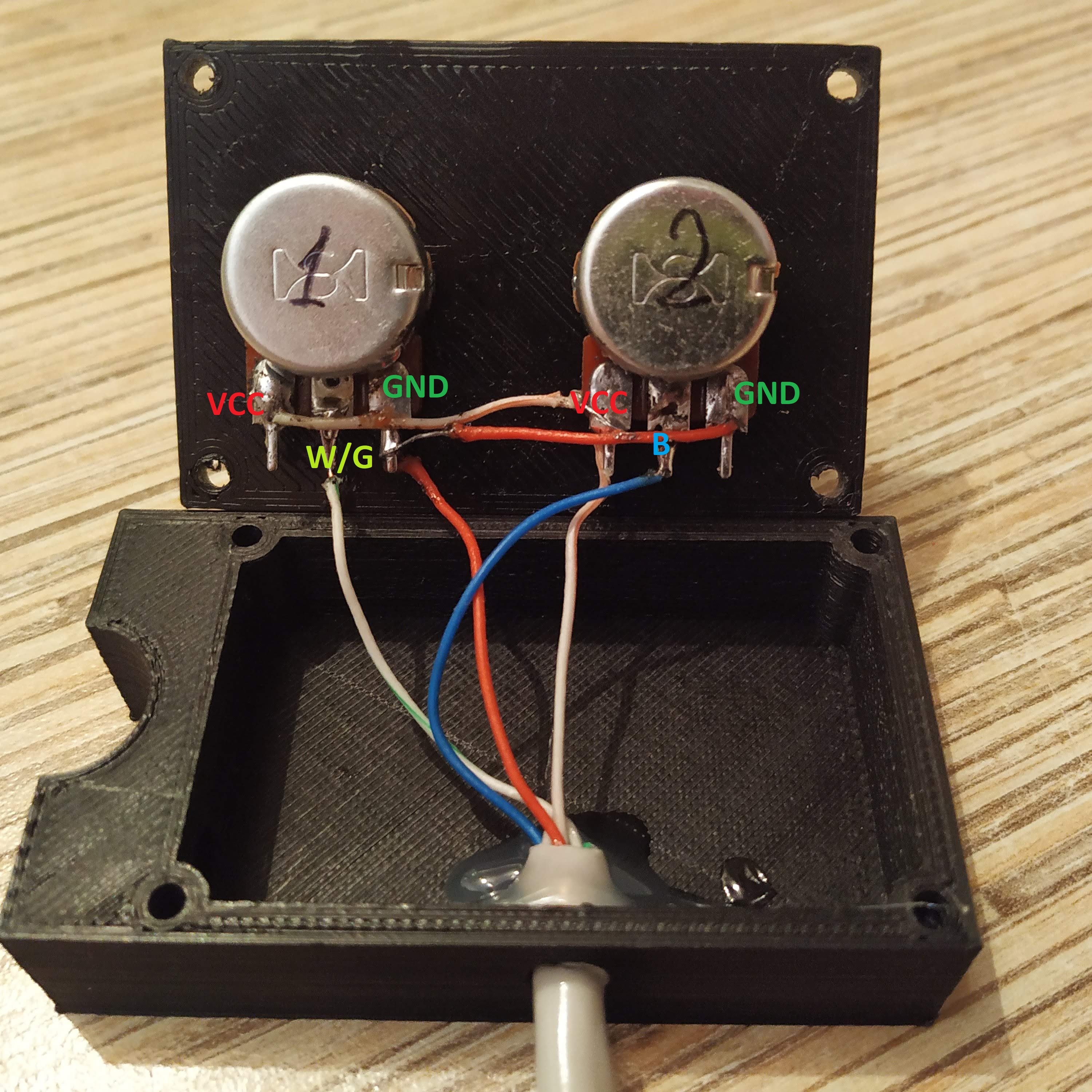 ETHERNET WHITE-ORANGE -> POT 1 & 2 VCC ETHERNET ORANGE -> POT 1 & 2 GND ETHERNET WHITE-GREEN -> POT 1 SIGNAL ETHERNET BLUE -> POT 2 SIGNAL
